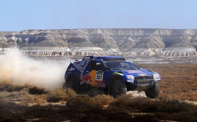 Und so geht es weiter… Am Ende der morgigen sechsten Tagesetappe über 698 Kilometer von Janaozen (Kasachstan) nach Turkmenbashi (Turkmenistan) erreichen die Teams das Kaspische Meer, den größten See der Erde. Bevor die Teilnehmer jedoch in die Hafenstadt einfahren können, müssen sie auf 514 WP-Kilometern eine knifflige Mischung aus unterschiedlichstem Terrain absolvieren – beispielsweise felsige Bergstrecken, extrem staubige Pfade, weiche Dünen, kleine Canyons und ausgetrocknete Seen.